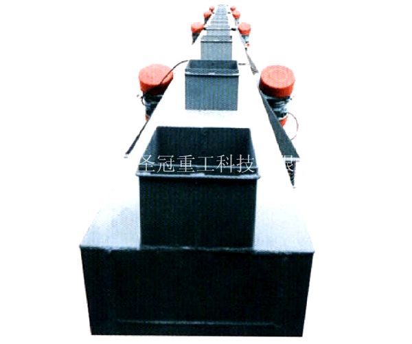 長距離振動輸送機有敞開式、封閉式兩種,料槽橫截面可以做成圓形、矩形和梯形等多種型式。料槽的進(jìn)料和出料也可根據(jù)需要制成一點進(jìn)料、一點出料,一點進(jìn)料、多點出料,多點進(jìn)料、一點出料等多種型式。輸送距離較長時可用多臺輸送機連接起來輸送。SCG型長距離振動輸送機料槽使用橡膠彈簧或鋼簧支承,依靠固定在料槽上的兩臺振動電機的自同步運轉(zhuǎn),使料槽產(chǎn)生直線振動。